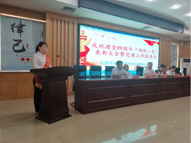 為深入貫徹落實(shí)中央和集團(tuán)公司黨組對全面從嚴(yán)治黨、加強(qiáng)國企黨建系列新要求新部署,堅持以黨的政治建設(shè)為統(tǒng)領(lǐng),鞏固“不忘初心、牢記使命”主題教育成果,全面加強(qiáng)公司黨建工作,進(jìn)一步推進(jìn)優(yōu)勢轉(zhuǎn)化,凝聚正勁干勁,推動公司全面可持續(xù)發(fā)展。7月1日,烏海市海勃灣城市供水有限公司召開慶祝建黨99周年“兩優(yōu)一先”表彰大會暨黨建工作報告會。