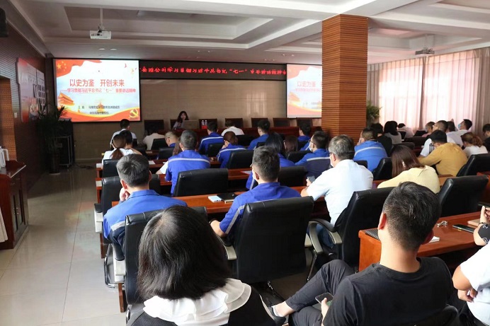 按照市委黨史學(xué)習(xí)教育領(lǐng)導(dǎo)小組辦公室《關(guān)于印發(fā)<學(xué)習(xí)貫徹習(xí)近平總書記“七一”重要講話精神專題宣講工作方案>的通知》(烏教辦發(fā)〔2021〕19號)文件要求,集團(tuán)公司黨委統(tǒng)一開展專題學(xué)習(xí)會,深入學(xué)習(xí)貫徹習(xí)近平總書記在慶祝中國共產(chǎn)黨成立100周年大會上的重要講話精神,深入貫徹落實國企改革三年行動工作方案,推動學(xué)習(xí)習(xí)近平總書記關(guān)于國有企業(yè)改革發(fā)展和黨的建設(shè)重要論述宣貫工作進(jìn)企業(yè)。9月30日下午,市城投集團(tuán)公司黨委舉辦學(xué)習(xí)貫徹習(xí)近平總書記“七一”重要講話精神專題學(xué)習(xí)會。本次學(xué)習(xí)由市城投集團(tuán)公司機(jī)關(guān)黨支部、城建公司黨支部、澤匯園林黨支部、濱河房地產(chǎn)黨支部、拓達(dá)清運(yùn)黨支部60余名黨員共同參加。黨課宣講活動邀請了烏海市黨史學(xué)習(xí)教育宣講團(tuán)成員、烏海市委黨校黨史黨建教研室講師、烏海社科智庫專家王莉老師作專題宣講。