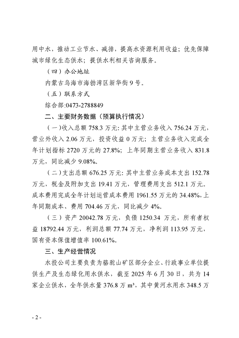 - 2023-07-11烏海市水務(wù)投資有限責(zé)任公司2023年第二季度信息公開報告