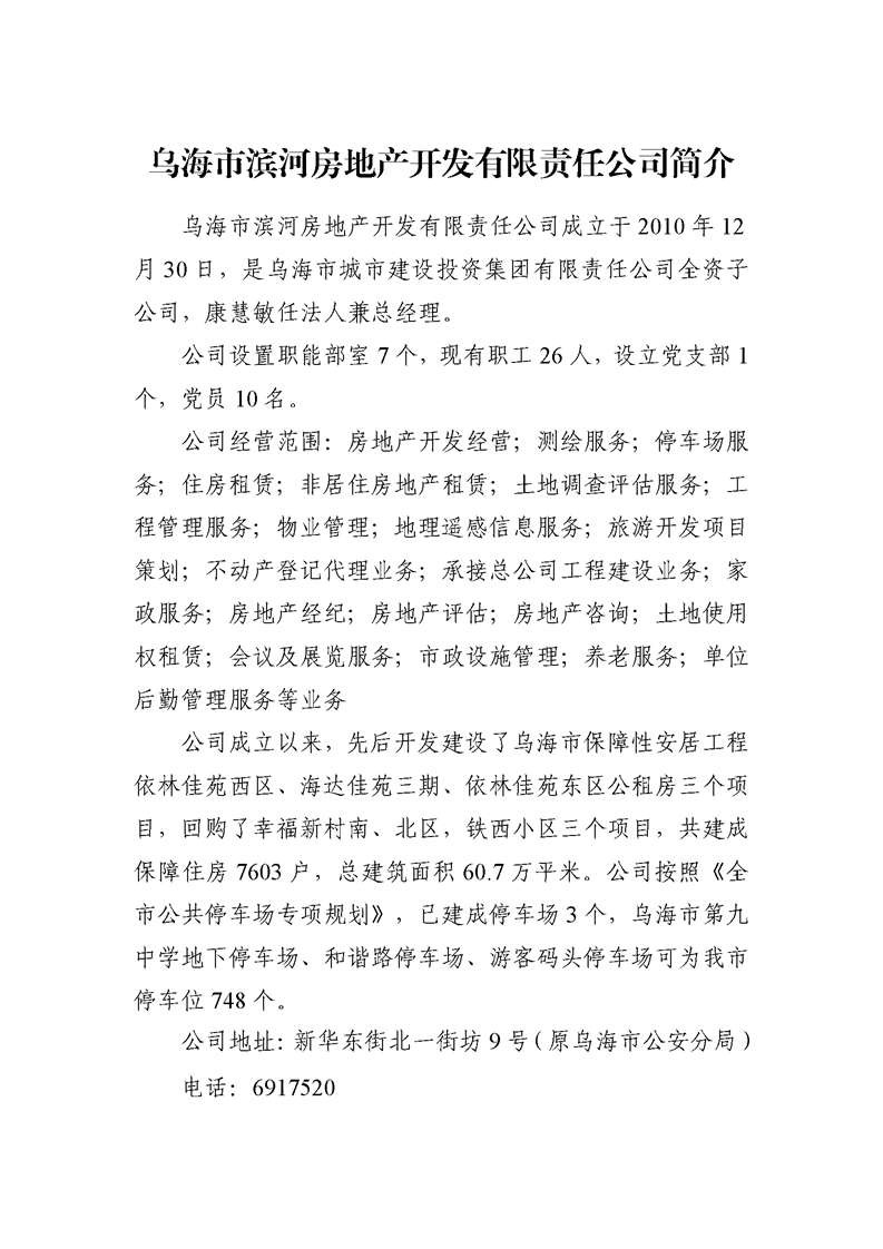 - 2025-03-10烏海市濱河房地產(chǎn)開發(fā)有限責(zé)任公司2024年度信息公開報(bào)告