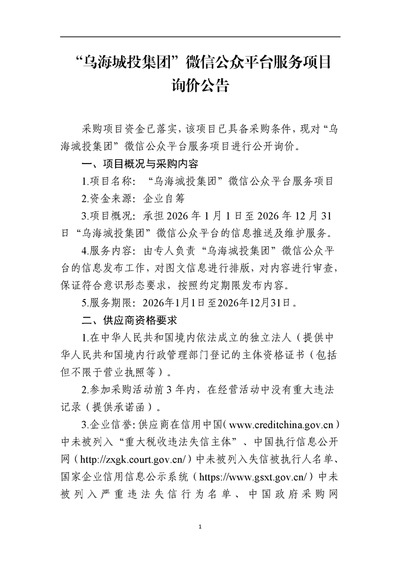 - 2025-10-14烏海市城市建設投資集團有限責任公司關于終止與內蒙古華格項目管理咨詢有限責任公司業(yè)務合作的通知