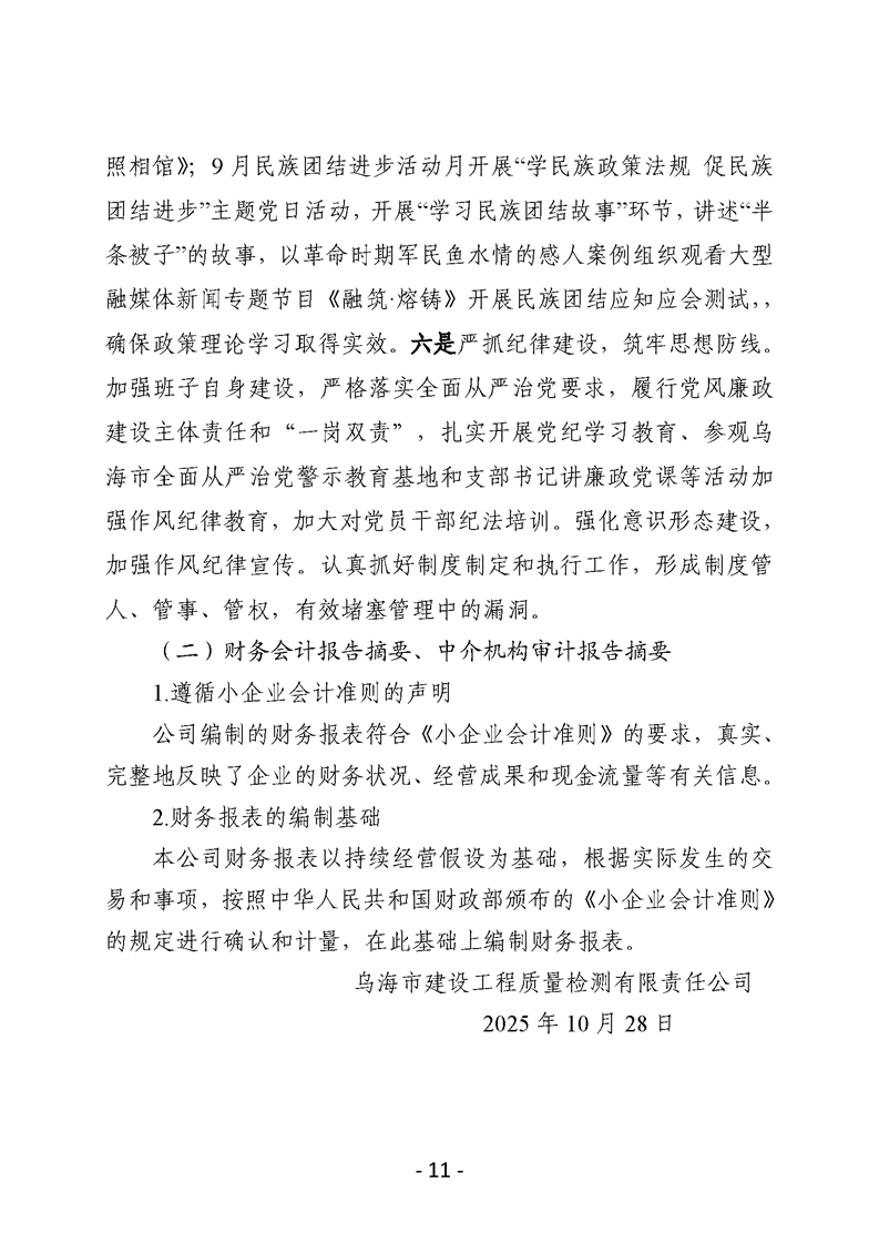 烏海市建設(shè)工程質(zhì)量檢測(cè)有限責(zé)任公司2025年三季度信息公開(kāi)