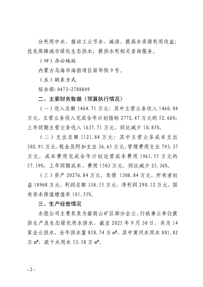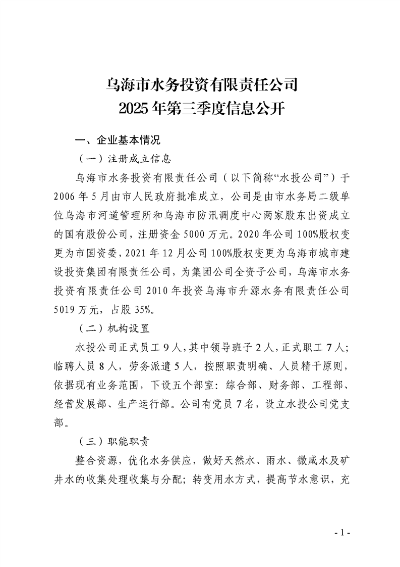 - 2025-07-28烏海市水務(wù)投資有限責(zé)任公司2025年第二季度信息公開(kāi)