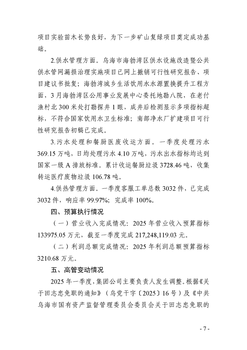 - 2025-07-25烏海市城市建設(shè)投資集團(tuán)有限責(zé)任公司 2025年度第二季度信息公開報(bào)告