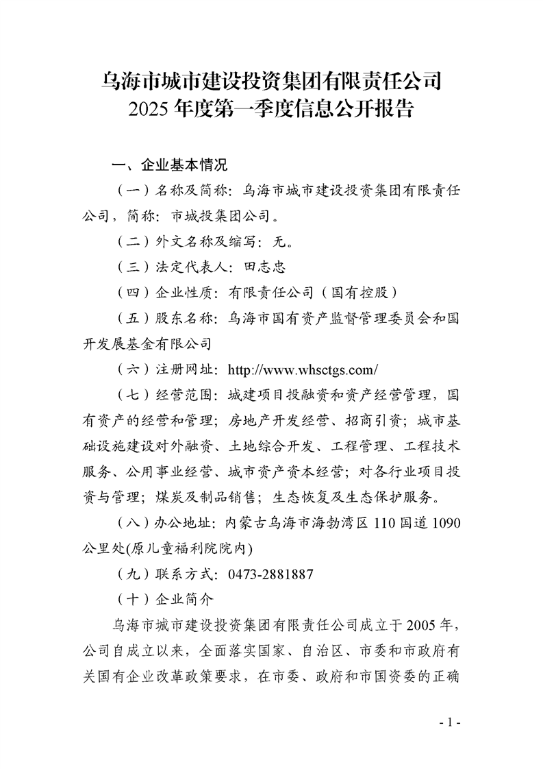 烏海市城市建設(shè)投資集團(tuán)有限責(zé)任公司 2025年度第一季度信息公開報(bào)告