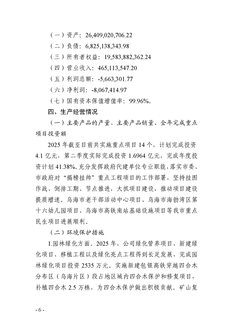 - 2025-04-23烏海市城市建設投資集團有限責任公司 2025年度第一季度信息公開報告
