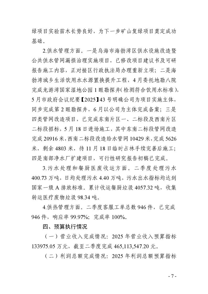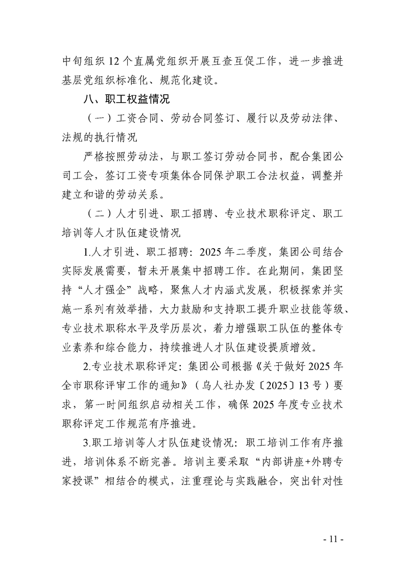 - 2025-10-21烏海市城市建設投資集團有限責任公司 2025年度第三季度信息公開報告