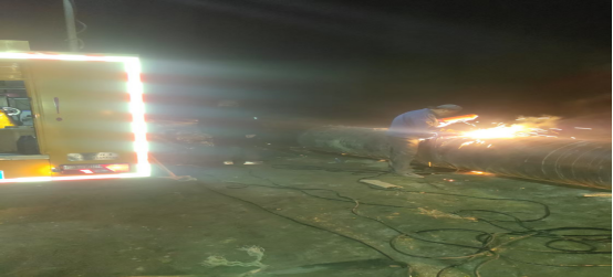 電焊組的師傅們頭戴面罩,手持焊槍,瞬間火花四濺,在黑暗中綻放出奪目光芒,熟練地進(jìn)行切割與焊接工作,其他人員則全力投入到拆卸工作中,他們齊心協(xié)力,將DN800蝶閥、DN800鑄鐵乙管、三通、伸縮器等部件逐一拆卸。盡管汗水濕透了衣衫,雙手被工具磨出了水泡,但沒有一個人喊累,所有人的目光都堅(jiān)定地聚焦在搶修任務(wù)上。