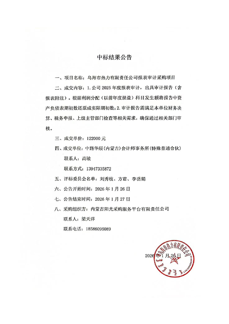 - 2026-03-12烏海市熱力有限責(zé)任公司自助繳費機服務(wù)器、數(shù)據(jù)庫、國產(chǎn)操作系統(tǒng)設(shè)備采購【招標(biāo)計劃】