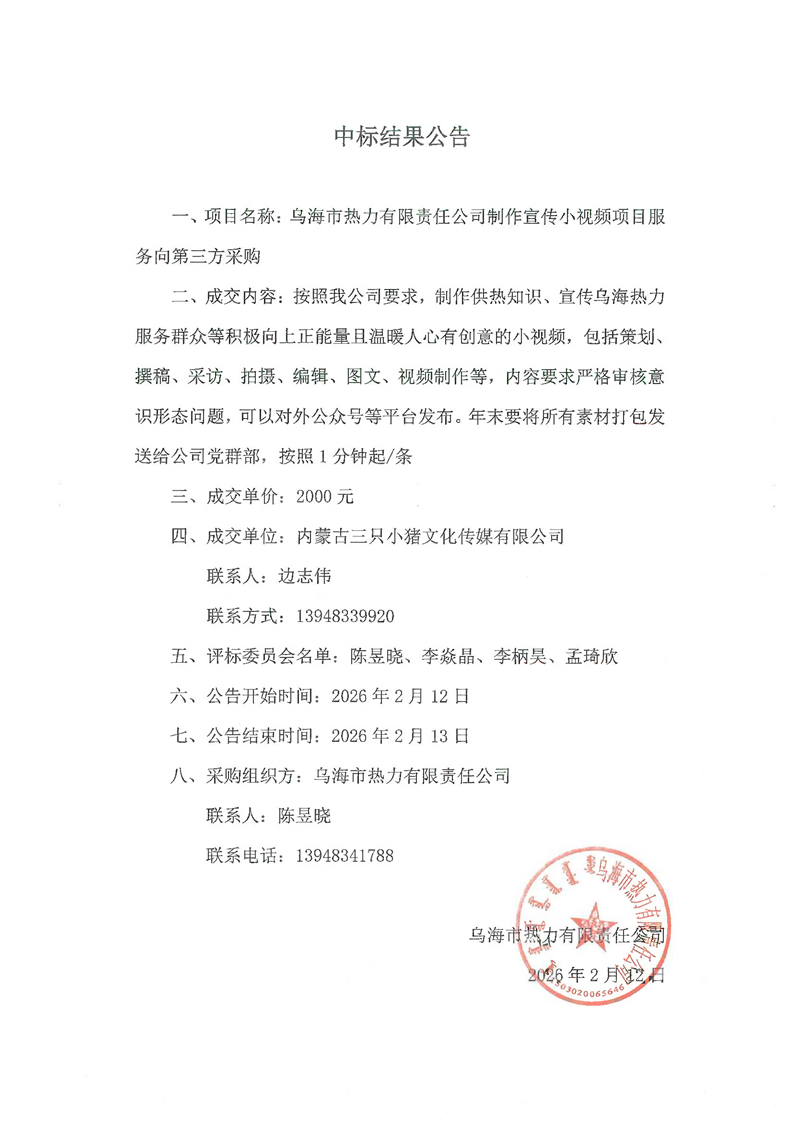 - 2026-03-132026年烏海市澤匯園林綠化工程有限公司育花溫室勞務(wù)中標(biāo)(成交)結(jié)果公示