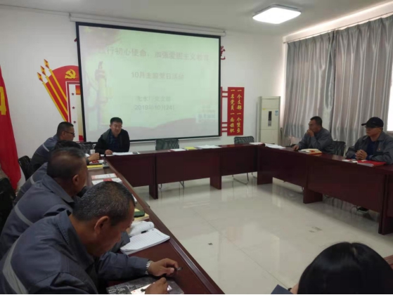按照《關(guān)于在市國資系統(tǒng)基層黨組織中開展“踐行初心使命,加強愛國主義教育”主題黨日活動的通知》要求,為激發(fā)廣大黨員干部的愛國熱情,凝聚奮進新時代的磅礴偉力,使愛國主義成為黨員干部的堅定信念、精神力量和自覺行動,10月24日,城市供水公司開展“踐行初心使命,加強愛國主義教育”主題黨日活動。五個基層黨支部分別完成奏唱國歌、重溫入黨誓詞、誦讀黨章、繳納黨費規(guī)定動作后,黨委委員在所在支部解讀《深入學(xué)習(xí)貫徹習(xí)近平總書記考察內(nèi)蒙古重要講話精神宣傳提綱》并組織黨員開展豐富多彩的主題黨日活動。